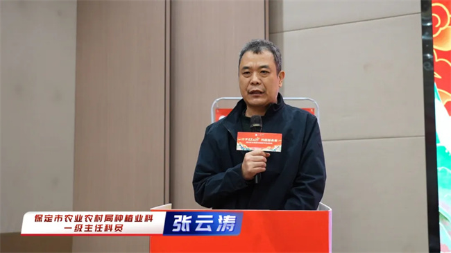 保定市农业农村局种植业科一级主任科员张云涛讲话中指出,众信麦998品种具有诸多优良特性,包括高产稳产、抗倒伏、抗病害性能突出等,这些特性使其在当前的农业生产中具有重要的推广价值。他强调,希望各位经销商朋友积极配合各级农业技术推广部门,加强对该品种种植技术的宣传与指导,确保农户能够掌握正确的种植方法,发挥优良品种更大的社会价值,为保障粮食安全、促进农民增收做出积极贡献。
