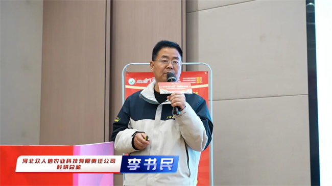 众人信科研总监李书民向与会人员全面介绍了公司科研成果及科企、校企合作取得的显著进展。他提到,众信麦998是公司重点培育的小麦新品种,具有矮秆大穗、抗寒性好等显著特征。品种的三要素协调,增产潜力大,已连续三年突破冬小麦高产纪录,为保障国家粮食安全作出了积极贡献。为了进一步提高众信麦998品种纯度和质量,公司通过精心规划和科学管理,开展三圃田提纯复壮工作,确保种子质量达到高标准。这些努力为众信麦998品种的持续优化和市场推广奠定了坚实基础,也为农业高质量发展提供了有力支撑。