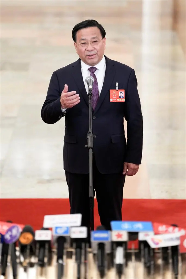 3月8日上午,十四届全国人大三次会议第二场“部长通道”集中采访活动在人民大会堂北大厅举行,农业农村部部长韩俊亮相通道。