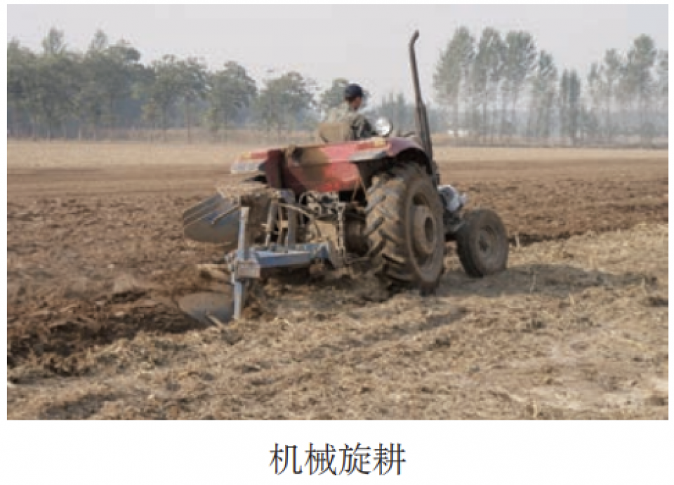 夏玉米收获后及时粉碎秸秆还田,覆盖在地表抑蒸保墒。进入适播期,采用旋耕机旋耕两遍,深度15厘米以上,连年旋耕的地块一般每3年深耕1次,深度28~35厘米,确保打破犁底层。旋耕后及时耙压,做到耕层上虚下实,地面平整无坷垃。