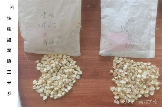 2、糯甜型双隐系之间杂交:会涉及2个基因的重组与分离,相比甜糯型的糯质背景基因,这种糯甜型双隐系之间的甜糯质基因的融合与分离关键是甜质基因的类型要相互对应,否则就会出现普通透明籽粒,会大大降低品种品质和适口性。也就是说糯甜型双隐系之间只有在同一甜质基因(sh2、bt、 su1、se)背景下的隐性纯合系才能相互组配。除非将来选育出三隐纯合型系的情况下才能进行不同甜质背景下的糯甜型双隐系之间组配。