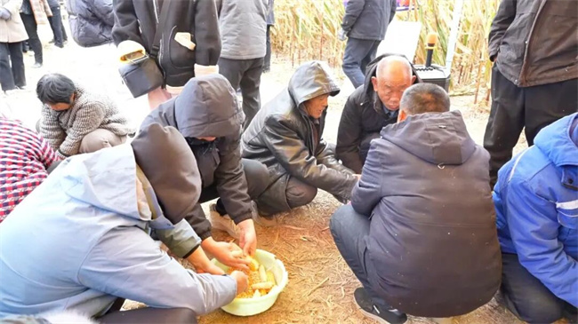 观摩会现场由农户自发组织进行了测产。最终实测结果为:干粮(折合14%水分)2227斤/亩。这一成绩在今年极端气候背景下尤为难得,再次印证了黄金粮MY73的稳产、高产实力。