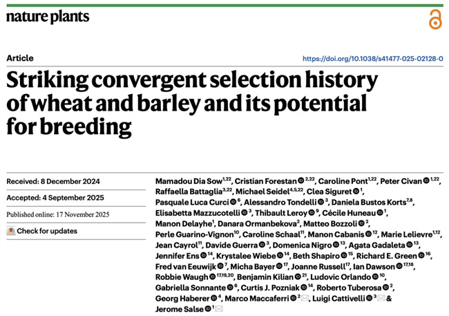 智种资讯在线:在过去的万年里,动植物的驯化奠定了人类文明的基石。其中,大麦和小麦作为全球两大关键主食作物,至今支撑着无数人口的生存与发展。2025年11月17日,《Nature Plants》发表了一项突破性研究,题为“小麦与大麦显著的趋同选择历史及其育种潜力”。