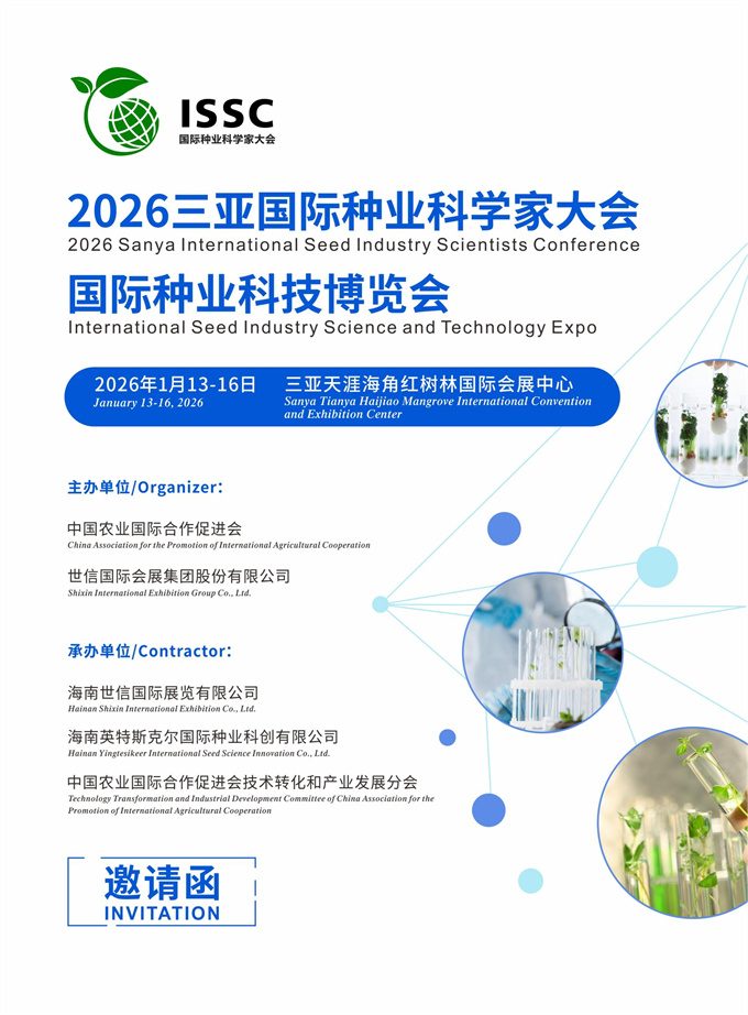 “2026国际种业科技博览会”将与“2026三亚·国际种业科学家大会”同期举办,本次博览会将集中展示国内外种业领域的最新品种、技术和装备,涵盖分子育种、智能育种等前沿领域,为种业企业提供展示实力、拓展市场、寻求合作的优质平台,加速种业科技成果转化与应用,推动全球种业科技与产业融合发展,为保障国家粮食安全、促进农业可持续发展注入新动能。
