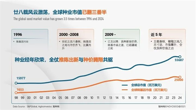 支撑这场版图重构的底层动力,是整个行业增长逻辑的根本性转变。S&P 报告明确指出:近五年来,全球主要作物种植面积几近停滞,种子市场的全部增长,均来自种子价格的提升。而价格提升的背后,是持续不断的科技创新。