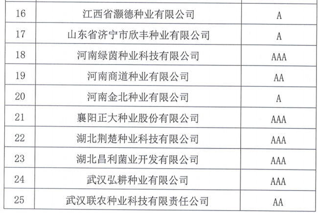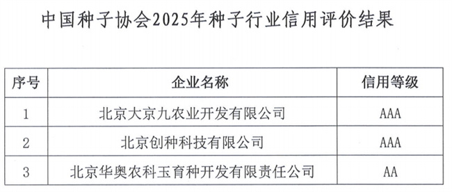 根据《中国种子协会行业信用评价管理办法》的规定,现对2025年种子行业信用评价评审结果予以公示,公示时间为10个工作日(2025年12月12日至26日)。公示期内,如对公布的企业信用评价结果有异议,请向我会信用评价办公室反映。反映问题需真实客观,并提供证据;反映人需用真实姓名并提供联系方式,不受理匿名意见。