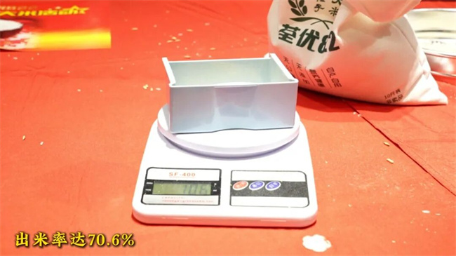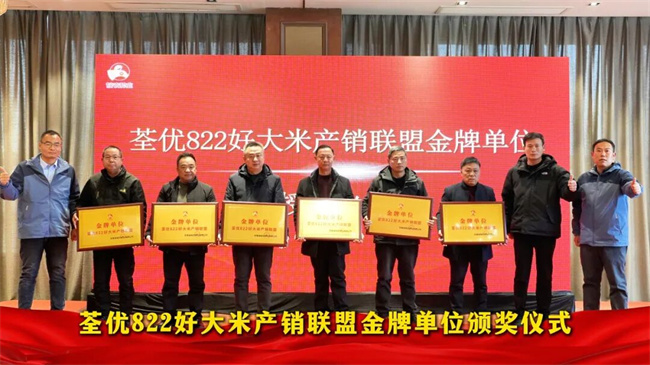 活动现场,在与会嘉宾共同见证下,对荃优822干稻谷进行出米率验证,结果显示出米率达70.6%。同时,皖农种业对2025年度在产销对接中表现突出的合作单位进行“金牌商”授牌。