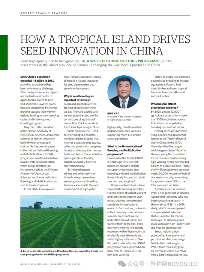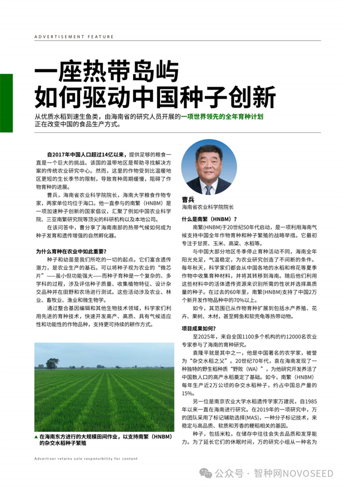 《一座热带岛屿如何驱动中国种子创新》的专访
