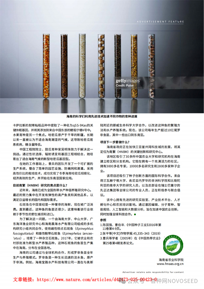 值得一提的是,这篇专题文章首次明确“HNBM”作为南繁的英文专有名词及缩写,实现了南繁英文表述的规范化与标准化。这一举措填补了此前南繁英文称谓不统一的空白,在国际层面构建起标准化的称谓体系,为南繁的国际形象塑造与品牌传播奠定了基础,更推动南繁的科研成果与实践经验走向全球。