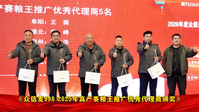 在行业普遍承压的2025年,众信麦998能够实现逆风增长,离不开一线市场的扎实推进。会议期间,公司对年度市场推广中表现突出的优秀零售商、高产粮王争霸赛代理商及新媒体推广代表进行了集中表彰。