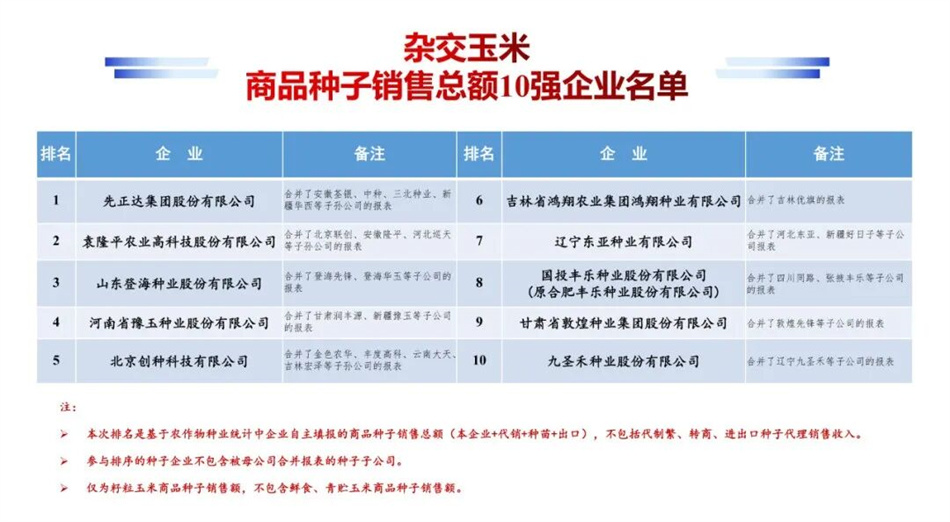 MY73、裕丰303、中科玉505占分居玉米全国推广面积前三强。先正达、隆平高科、登海种业分居玉米商品种子销售额前三强。