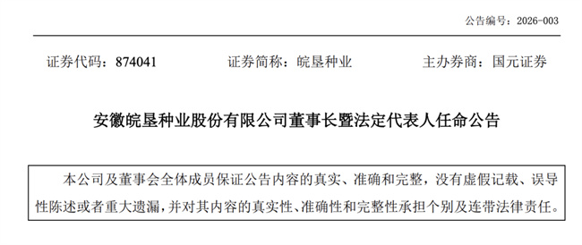 1月9日,安徽皖垦种业股份有限公司发布董事长暨法定代表人任命公告。据公告,皖垦种业原董事长徐世园因工作变动辞任董事长职务,为确保公司工作的顺利展开,根据《公司法》和《公司章程》的有关规定,现选举卢子浩担任公司第五届董事会董事长。