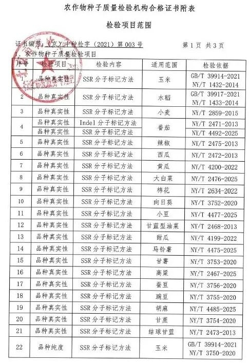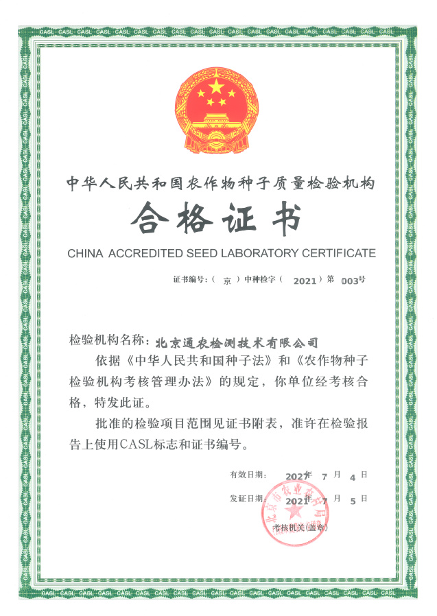 1.资质全:具备CASL资质(农作物种子质量检验机构合格证书);