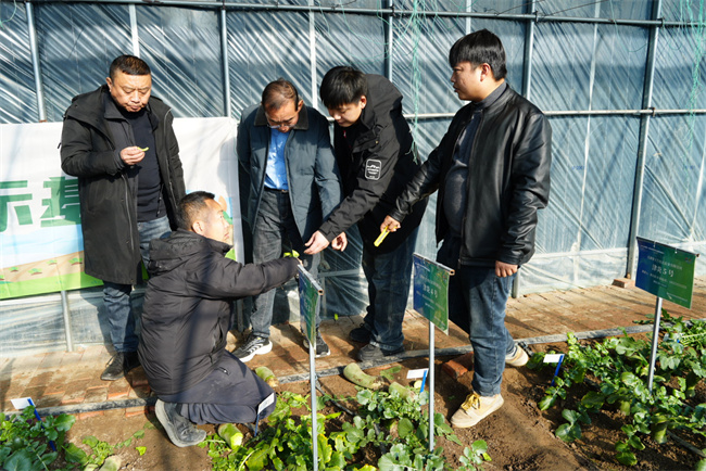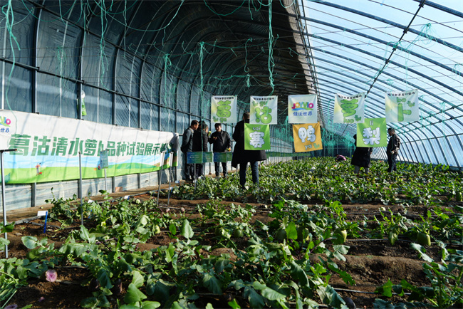 参展的萝卜种业企业、种植户在试验台中品鉴不同品种萝卜。