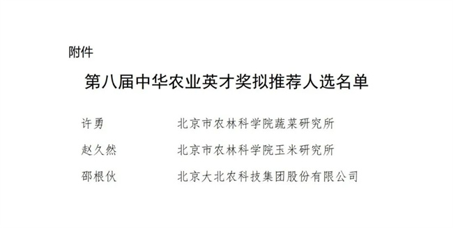 北京市农业农村局关于第八届中华农业英才奖拟推荐人选的公示