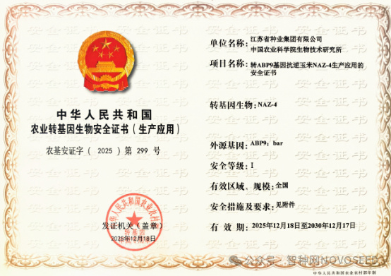近日,中国农业科学院生物技术研究所与江苏省种业集团联合研发的抗旱玉米转化体,正式获得农业农村部农业转基因生物安全证书(生产应用)。