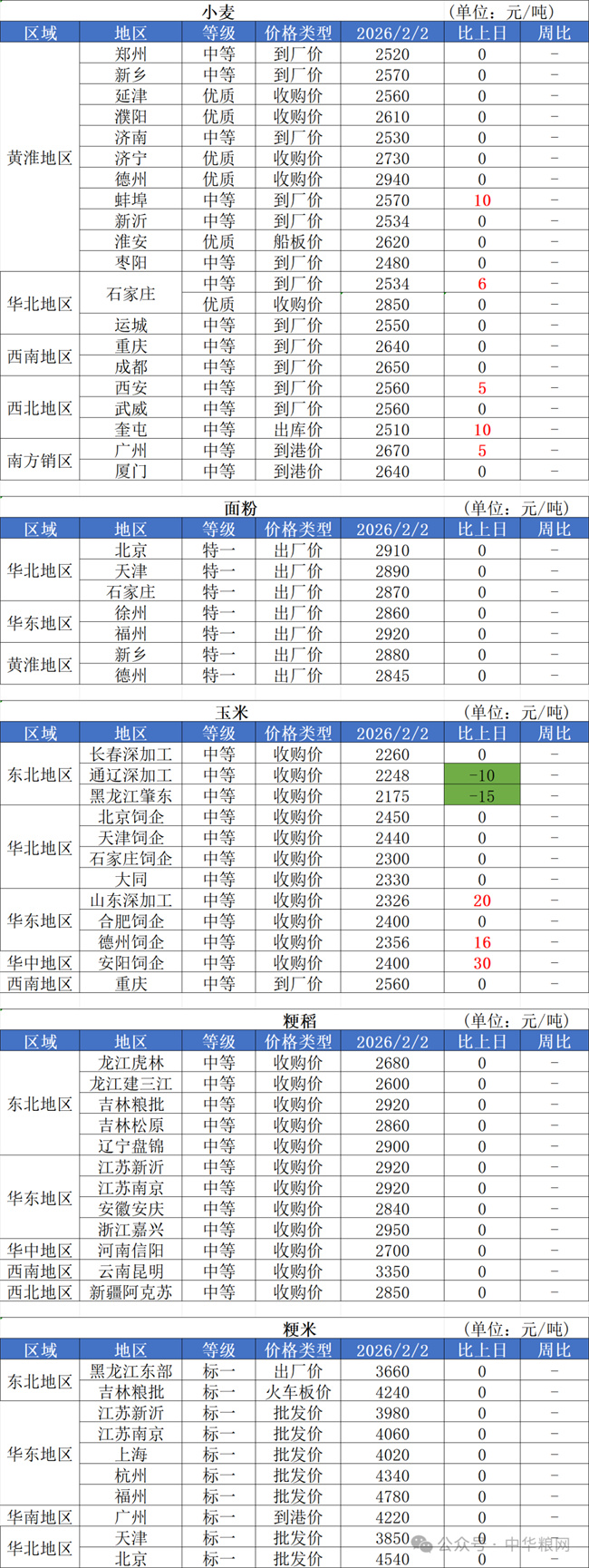 1、2月2日,国内小麦收购价格整体平稳运行,零星制粉企业小幅上调收购价格,幅度在5厘。目前下游企业春节备货尚未结束,小麦流通正常,预计短期内麦价继续保持平稳运行。