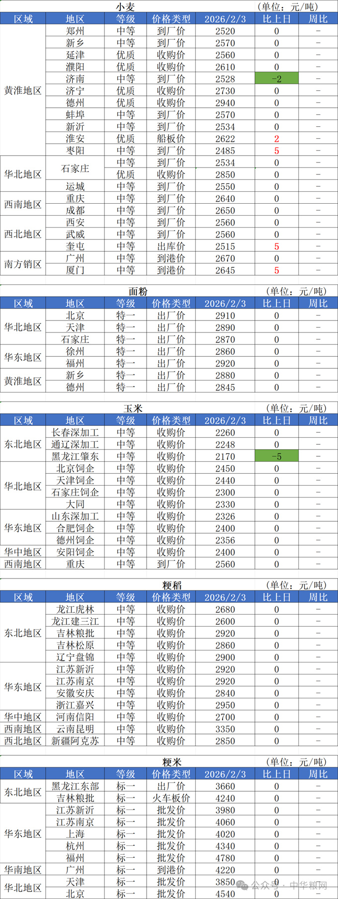 1、2月3日,小麦市场主产区报价延续平稳趋势,局部企业小幅温和上涨,涨价区域集中山东、河南、河北,涨幅在3-5厘,目前下游面粉行业春节备货尚未结束,部分区域麦价可能存在温和的上涨空间。