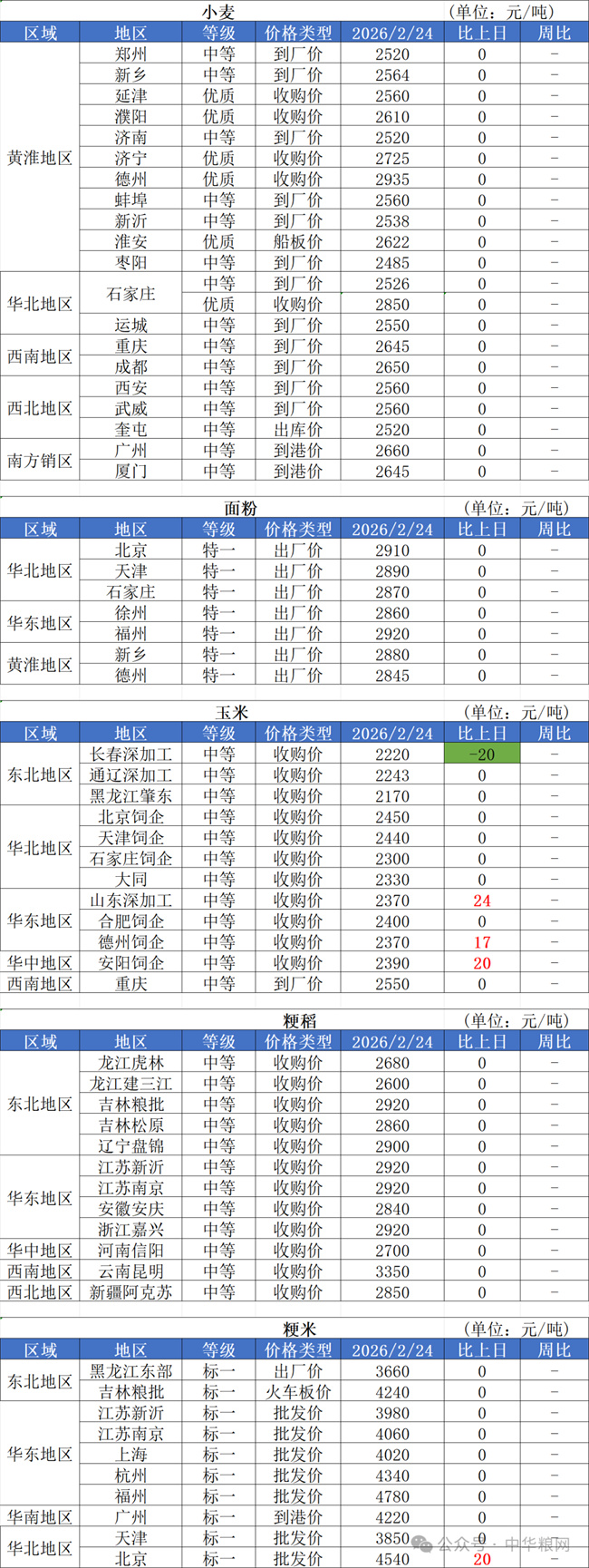 1、2月24日,国内小麦收购价格保持平稳运行,主要因国内制粉企业刚刚复工,市场购销活动尚未完全恢复,小麦收购价格保持平稳。