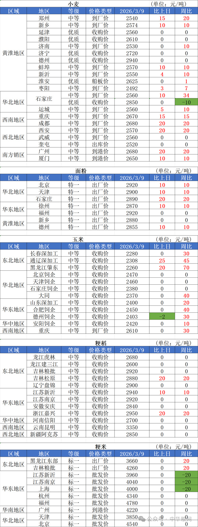 1、3月9日,小麦加工企业收购价格继续偏强运行,山东、河北、河南、江苏等主产区面粉厂均有不同程度的上涨,市场粮源持续消耗,叠加饲料企业采购的影响下,市场看涨情绪浓厚。