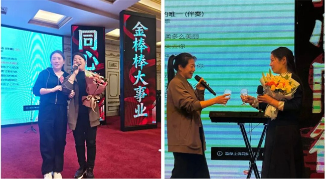 晚宴上,气氛热烈而温馨。多位客户自告奋勇,踊跃上台,用歌声表达对金棒棒事业的热爱与支持。最动人的一幕,发生在晚宴进行中。公司领导在席间深情地说:“在我们的事业中,有无数女性朋友默默耕耘、辛勤付出。她们是田间的守护者,是家庭的顶梁柱,更是我们金棒棒事业不可或缺的‘半边天’。”公司为在场的每一位女客户送上了精心准备的鲜花。
