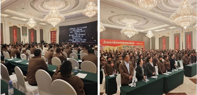 在庄严的国歌声中,全体与会人员肃然起立,心中激荡着对国家的热爱和对农业事业的崇高敬意。随后,在领誓人的带领下,全体金棒棒人举起右拳,进行了庄严的宣誓。誓言铿锵,字字千钧,表达了我们服务三农、心系丰收的坚定决心。
