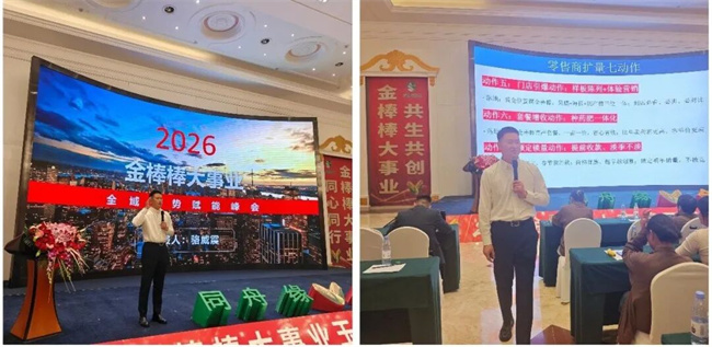 如果说品种是“弹药”,那么营销战略就是“作战地图”。金棒棒营销总监骆威震带来的《营销聚势战略讲解》,为全体合作伙伴指明了方向,注入了强大动力。骆总围绕经销商破局三战略、经销商实战四打法、零售商保客四铁律、零售商扩量七动作四大核心营销方法论,系统阐述了新一年度的营销打法,通过“线上赋能+线下深耕”的组合拳,帮助经销商伙伴实现销量与利润的双重增长,真正做到“赋能共赢”。通过“线上赋能+线下深耕”的组合拳,帮助经销商伙伴们实现销量与利润的双重增长,真正做到“赋能共赢”。