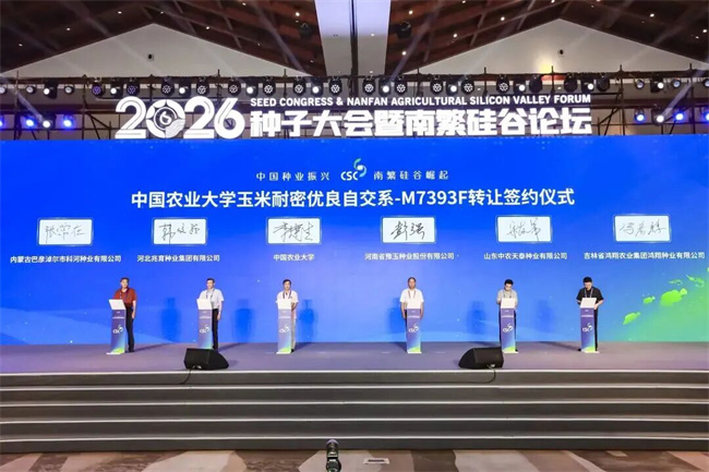 3月28日,2026种子大会暨南繁硅谷论坛在海南三亚开幕。会上,中国农业大学玉米耐密优良自交系M7393F转让签约仪式举行,该自交系以总计1000万元的价格,成功转让给五家种业企业,标志着校企协同推进优质种质资源转化应用迈出关键一步。