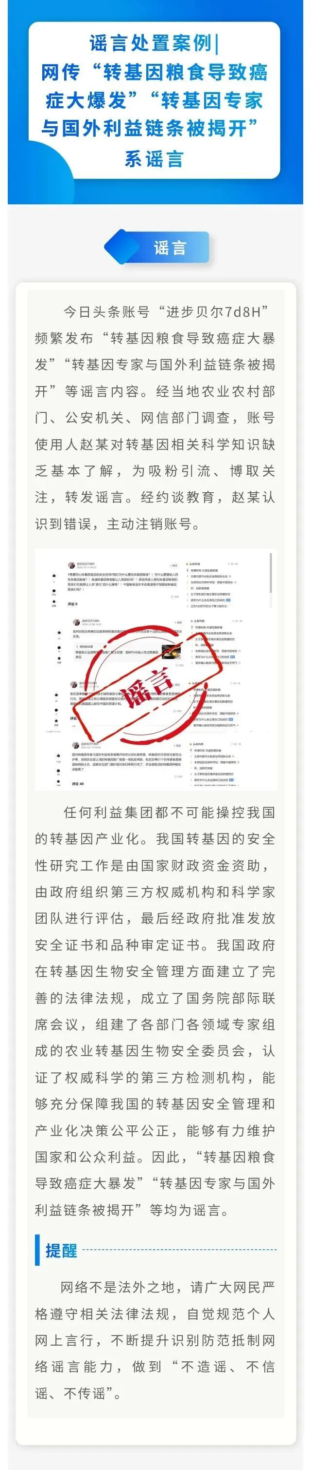 谣言!网传“转基因导致癌症大爆发”“转基因专家与国外利益链条被揭开”