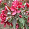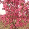 高原之火   乔木,高5~7m,树型直立,树冠圆呈开放型,冬季枝干呈暗红色。春芽3月初萌发,深紫红色,新生叶片亮酒红色,成熟叶片逐渐变成带有紫韵的橄榄绿。叶片长椭圆形,先端急尖,锯齿钝。花蕾深红色,花深粉红色,颜色艳丽,小花直径3~3.5cm,非常醒目。6月底果实暗酒红色,繁盛。果实直径1.1cm,颜色由暗红至橘红,最后到深红,秋冬季长时间挂在树上。