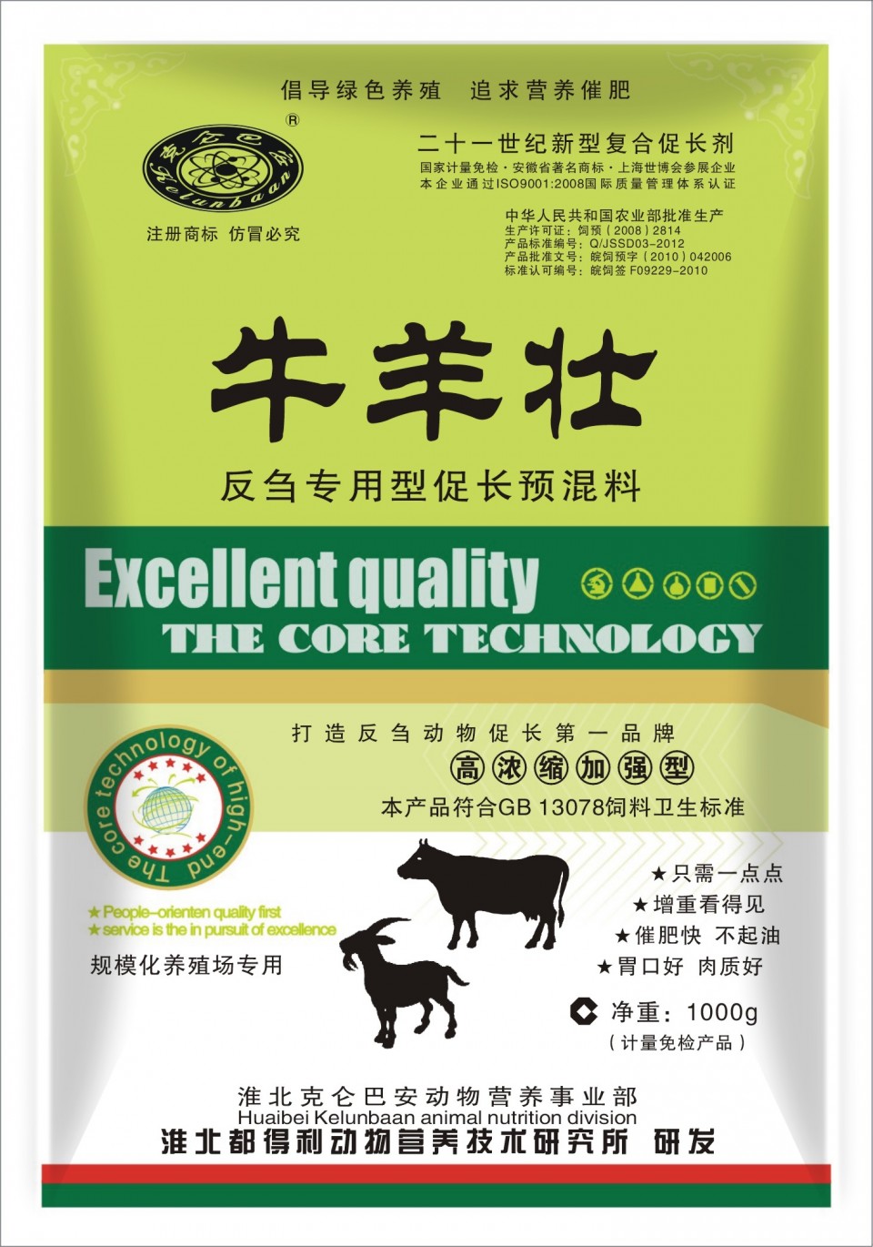 克仑巴安,只需一点点,增重看的见!千家万户的验证:“多、快、好、省”即:吃的多,排的少、生长快、体型好、节省成本,缩短饲养周期。产品功效:使用3天后,采食量大增,7天后,粪便减少,臀部开始丰满. 15天后,收腹,背部变宽. 20天左右,猪只各部位己达丰满型. 使用期间料肉比可降低15%-18%,提高日增重20%-25%."克仑巴安"可以替代"瘦肉精"作用,无药残.料和尿任意检测均成阴性.而且在大型猪场经过多次实验,效果显著、安全、营养、高效。现产品远销全国各地,深受养殖场欢迎。
