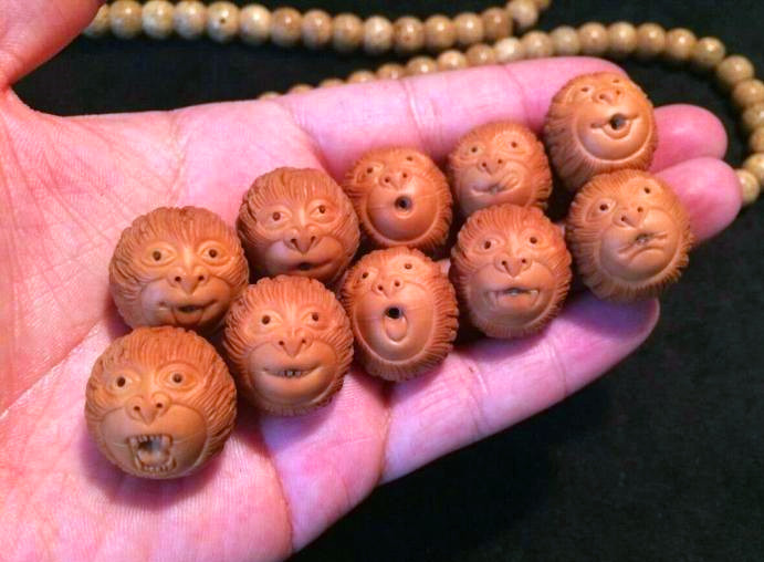 3. 青年人(男):核雕猴头手串,光珠手串,素珠长串,核雕猴头(美猴王、八面威风猴、怒发冲冠猴、美女猴),核雕人物(弥勒佛、淑女)。