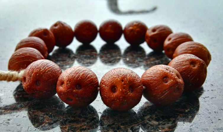 2. 猴头核桃是大自然赋予的天然种籽,具备作为菩提子的所有特征。据《菩提问道——菩提子串珠的收藏和把玩》一书介绍,作为佛家修行诵经辅助工具的串珠,其菩提子应具有以下4个特征:(1)菩提子都是天然的种籽或者果实;(2)原籽都有形态各异的纹理或特殊的形状;(3)大多数菩提子都可以通过深加工得到三四个衍生品种;(4)把玩一段时间后,颜色和光泽都会发生变化,往往会变得温润如玉。显而易见,小猴头核桃完全具备上述4个特征。另外,如果以上描述的菩提子的4个特征是佛界普遍认可的话,那么目前市场上大量的木珠、玉珠、水晶、玛瑙、琥珀等珠串制品,就只能作为饰物、工艺品、艺术品,供普通大众佩戴、把玩、鉴赏,可能就与佛无缘了。当然,对广大玩友而言,无论你持用那种品类的“籽”,也无论你仅仅是“玩籽”,还是将其作为具有佛法意味的器具,只要你心中有佛,用心把玩,串珠作为文玩的一种,都可收到修身养性、积德纳福之功效。