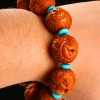 2. 猴头核桃是大自然赋予的天然种籽,具备作为菩提子的所有特征。据《菩提问道——菩提子串珠的收藏和把玩》一书介绍,作为佛家修行诵经辅助工具的串珠,其菩提子应具有以下4个特征:(1)菩提子都是天然的种籽或者果实;(2)原籽都有形态各异的纹理或特殊的形状;(3)大多数菩提子都可以通过深加工得到三四个衍生品种;(4)把玩一段时间后,颜色和光泽都会发生变化,往往会变得温润如玉。显而易见,小猴头核桃完全具备上述4个特征。另外,如果以上描述的菩提子的4个特征是佛界普遍认可的话,那么目前市场上大量的木珠、玉珠、水晶、玛瑙、琥珀等珠串制品,就只能作为饰物、工艺品、艺术品,供普通大众佩戴、把玩、鉴赏,可能就与佛无缘了。当然,对广大玩友而言,无论你持用那种品类的“籽”,也无论你仅仅是“玩籽”,还是将其作为具有佛法意味的器具,只要你心中有佛,用心把玩,串珠作为文玩的一种,都可收到修身养性、积德纳福之功效。