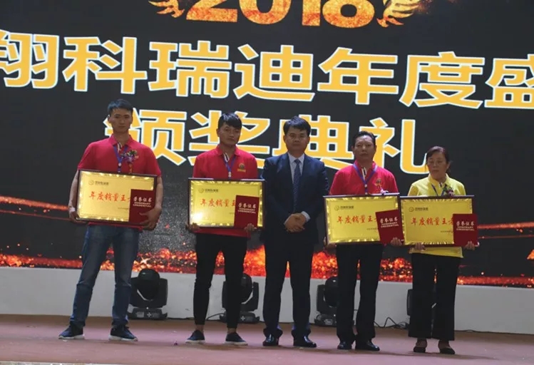 为了鼓励先进、激励广大经销商伙伴以更高的热情、更积极的态度去投入到品种的营销当中,会上,鸿翔科瑞迪向表现优秀、业绩突出的经销商伙伴颁发了风雨同舟奖、潜力之星奖、卓越奉献奖、销量王者奖荣誉证书和奖牌。
