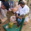 测产验收从上午8点半正式开始,五位专家分为两组,分别带领5名当地村民,在150亩的示范田内随机选取30亩,采用五点取样法,每个样点均在67㎡以上。验收组穿梭在玉米田间选点,丈量,收取样点果穗、数果穗数,称果穗鲜重,计算平均果穗鲜重,现场脱粒,计算鲜果穗出籽率。根据鲜果穗重、鲜果出籽率计算亩鲜籽粒重。随后,验收组专家又用谷物水分测定仪,测定籽粒含水量,每样点重复5次,最后,计算出亩籽粒产量,玉米籽粒含水量以14%计算。