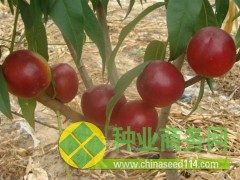 日本夏之梦桃:7月下旬成熟,高糖硬肉,颜色鲜红,芳香浓郁,品质极佳,果实特大,果重298~650克,8月上旬成熟,幼树成花快,发芽密集,坐果率很高可供成品苗2万株。