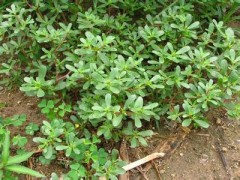 马齿苋(叶及花)一年生草本,全株无毛。茎平卧或斜倚,伏地铺散,多分枝,圆柱形,长10-15厘米,淡绿色或带暗红色。叶互生,有时近对生,叶片扁平,肥厚,倒卵形,似马齿状,长1~3厘米,宽0.6~1.5厘米,顶端钝圆或平截,有时微凹,基部楔形,全缘,上面暗绿色,下面暗红色或淡绿色,中脉微隆起;叶柄粗短。花无梗,直径4-5毫米,常3~5朵簇生枝端,午时盛开;苞片2-6,叶状,质膜,近轮生;萼片2,对生,绿色,盔形,左右压扁,长约4毫米,顶端急尖,背部具龙骨凸起,基部合生;花瓣5,稀4,黄色,倒卵形,长3-5毫米,顶端微凹,基部合生;雄蕊通常8,或更多,长约12毫米,花药黄色;子房无毛,花柱比雄蕊稍长,柱头4~6裂,线形。蒴果卵球形,长约5毫米,盖裂;种子细小,多数,斜偏球形,黑褐色,有光泽,直径不及1毫米,具小疣状凸起。花期5~8月。果期6~9月。马苋菜适应性极强,耐热、耐旱,对光照的要求不严格。强光、弱光下均可正常生长,在温暖、湿润、肥沃的壤土或沙壤土上生长良好,并在任何土壤中都能生长,能储存水分,即耐旱又耐涝,和其他杂草一样生命力极强,只要稍加管理就可很好的生长。