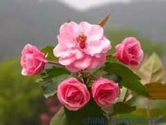 白兰地海棠 乔木,高6-8m。树型直立,树冠挺拔,枝条轻微开张。叶片椭圆形,嫩叶酒红色,成熟后灰白色,锯齿钝,花蕾玫瑰红色,花粉红色,复色花。本品种树形挺拔,花色鲜艳,着花甚密,花瓣玫瑰红,它是最重要的冬季观果品种之一。长势最快的北美海棠品种。适于小区行道树,可丛植,狭窄地带使用最佳。