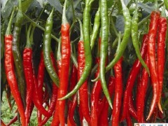 三、红泽一号:该品种是利用鸡泽辣椒和川椒杂交选育而成。早熟,株高60cm,株幅55cm,果长20cm,单果重18-20克,嫩果皮绿,熟果鲜红,味辣浓,适抗病性强,耐高温,亩产鲜椒3000公斤。是鲜辣椒走市场的最佳品种。