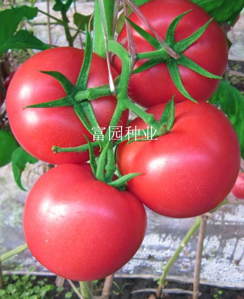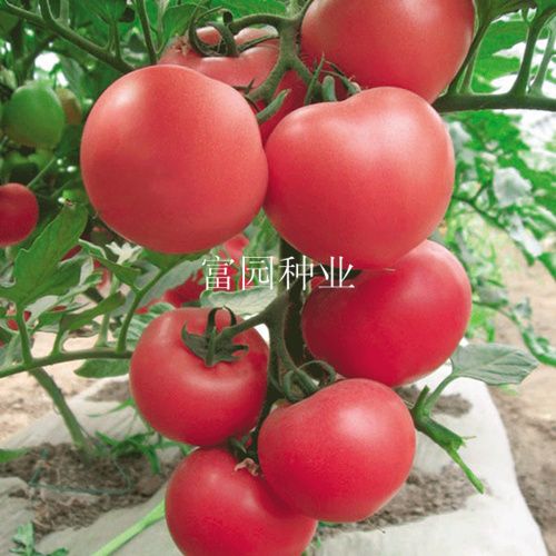 荷兰进口,无限生长型高档硬粉番茄,长势健壮,早熟性好。连续坐果能力强,大果型,单果重280——300克左右,产量极高。果实颜色粉红色,色泽亮丽,转色均匀一致。果型为高圆形,硬度高,耐贮运,精品率高,果脐小。无青皮青肩,不裂果不空心。。耐寒性强,在低温弱光等条件下仍能正常膨果转色!