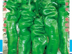 同乐23188:一代杂交螺丝椒,极早熟,始花节位10节左右,果长26-28cm,宽3-4cm,单果重60-120g左右,果皮绿色,辣味浓,肉厚质佳,耐运输,耐低温,抗高温,抗病。节间短,挂果多,膨果快,连续结果能力强,产量高,栽培适当亩产6700kg以上。
