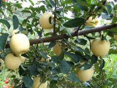 维纳斯黄金苹果:维纳斯黄金苹果为有性杂交繁殖的后代,其母本为金帅,父本不详。果实长园形,果皮无袋栽培为黄色、阳光面稍薄红晕色;套袋栽培外观较好。果实采收成熟期在11月上中旬(比富士略晚,富士采收结束后采收),果肉黄色,较硬但口感脆爽,肉质好,果汁多,可溶性固形物极高,酸味很轻、味甜足,有芳香味,品质最高。与同期成熟的其他苹果品种相比,果实比重相对较大(即同等大小的苹果,维纳斯黄金单果重更重),果径略小于富士。