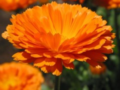 百日草又叫百日菊、步登高、步步高、火球花、秋罗.为直立性一年生草本,株高40-120厘米,茎杆有毛.侧枝呈杈状分枝.叶对生、无柄、卵圆形,夏秋开花,头状花序单生枝顶,花径约10厘米,管状花黄紫褐色,舌状花除蓝色外,各色均有.瘦果、种子千粒重2.8-11克.适宜播种于花坛、花镜,矮生种可盆栽.百日草也是优良的切花材料.