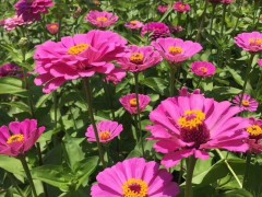 百日草花大色艳,开花旱,花期长,株型美观,可按高矮分别用于花坛、花境、花带.也常用于盆栽.花朵陆续开放,长期保持鲜艳的色彩,象征友谊天长地久,更有趣的是百日草朵花开在顶端,然后侧枝顶端开花比朵开的更高,所以又得名“步步高”.