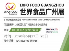 由上海博华国际展览有限公司、中国国际贸易促进委员会广州市委员会共同主办的“2020世界食品广州展(Expo Food Guangzhou 2020)”将于2020年5月21-23日在广州琶洲·保利世贸博览馆举行。展会以广州为窗口依托强 大的中国消费市场需求,全力打造成为华南地区国际化和专业化程度最高的食品展览会。展会汇聚国内外最优秀企业,展商与买家需求的高度匹配,专业优质的服务,都在不断为展会赢得更高的买家人气。2020展会将全面升级,展览总面积预计将达80,000平方米,将有来自30多个国家和地区2000多家企业参展,其中专业采购商达80,000人次,总观众数量达10,000人次。