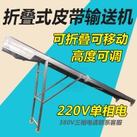 折叠式皮带输送机设计轻巧、搬运方便;配有移动轮,移动更方便;可以折叠,占用空间小;造价便宜;皮带防滑设计,输送高度更高,更适合各种袋装物料、纸箱等。