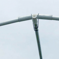 本品为大棚连接管,起到连接大棚管作用,用于两支拱管外对接,热镀锌,要配合钢丝夹(压顶簧、顶弹簧)使用。