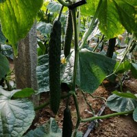 本品种为杂交一代,植株长势强,叶片中等,主蔓结瓜为主,瓜码密,瓜条生长速度快,不歇秧,连续坐瓜能力强,瓜条顺直,黑油亮刺密把短,瓜肉浅绿,味甜,瓜长35厘米左右,商品性好,双亲均选用抗病亲本,高抗枯萎病,霜霉病,角斑病和白粉病,耐低温弱光,越冬培育苗亩产4万斤左右,适合温室大棚及早春拱棚种