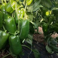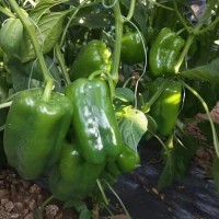 该品种是本公司推出的杂交一代甜椒,中早熟,植株健壮,节间中等,果长9cm,果实大,单果重250克左右,以采绿椒为主,果实光滑,果肉厚,味微甜,硬度好,抗TMV,PVW,适应性非常广。